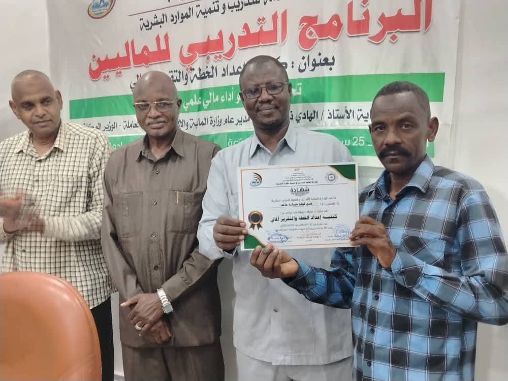 شهد الأستاذ الهادي ناصر المدير العام لوزارة المالية والاقتصاد الوزير المكلف ختام البرنامج التدريبي لكوادر الماليين حول كيفية إعداد الخطة والتقرير المالي الذي انعقد بقاعة الوزارة تحت شعار:(نحو أداء مالي علمي متطور) بحضور الأستاذ سيف الدولة أحمد هاشم مدير الإدارة العامة للميزانية والدكتور يوسف أودون المستشار الاقتصادي والأستاذة زينب العبيد مدير ديوان شؤون الخدمة وأعضاء المجلس التنفيذي للوزارة